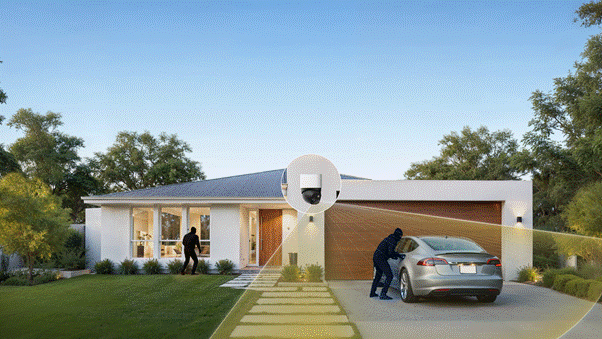 Další venkovní kamera může být u zadního vchodu nebo zahrady, kde bývá dům nejzranitelnější. Pro taková místa se hodí samostatná bateriová kamera eufy Security S340 SoloCam – ta sleduje pohyb, při aktivitě se umí otočit za objektem a díky solárnímu panelu se průběžně dobíjí, takže funguje i tam, kde není přívod elektřiny. U některých modelů se při pohybu automaticky rozsvítí reflektor nebo se spustí siréna – to už samo o sobě dokáže nezvané hosty odradit dřív, než se dostanou k domu.
